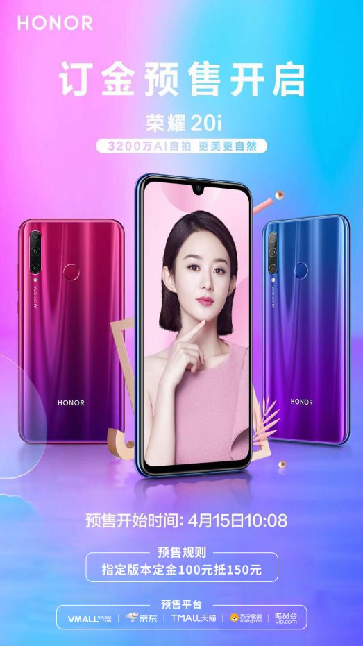 另外,荣耀20i预售活动已经开启,即日起至17日晚23:30可前往Vmall商城、京东、天猫、苏宁、唯品会五大电商平台进行预订,提前预订更优惠!即日起,指定版本参与预售更有100元抵150元限时福利哦,赶快预订吧!