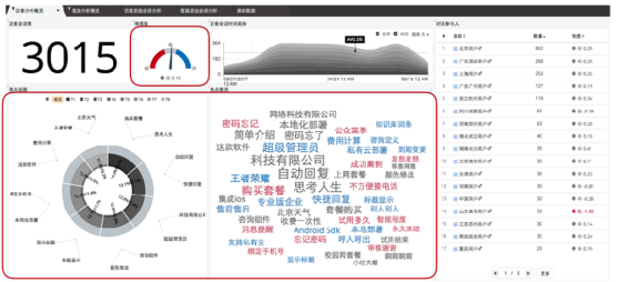 智齿360是通过预测建模、机器学习以及强大的统计自然语言处理器(NLP)算法,准确的分析企业海量数据后产生可操作的分属各个主体的可视化效果。