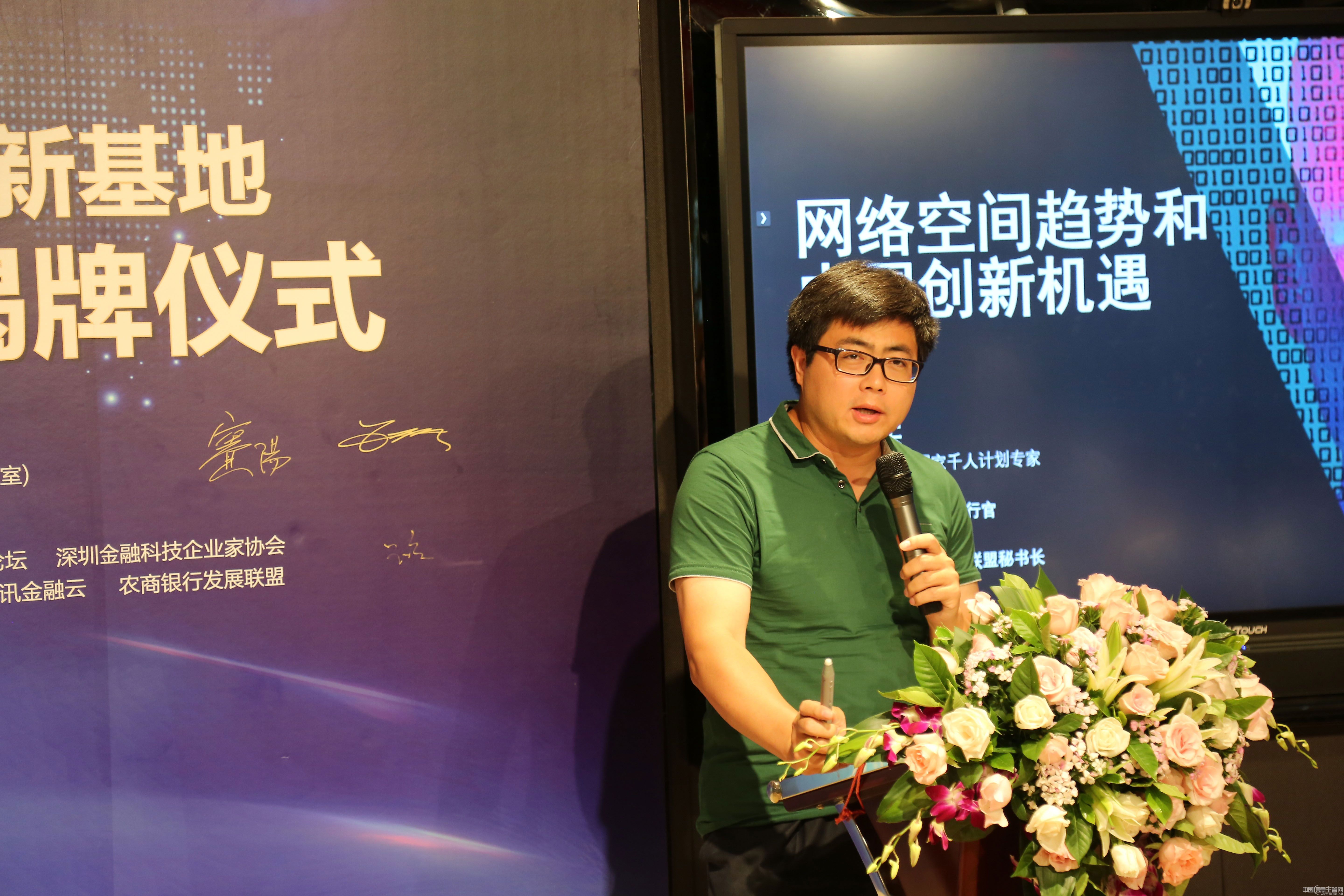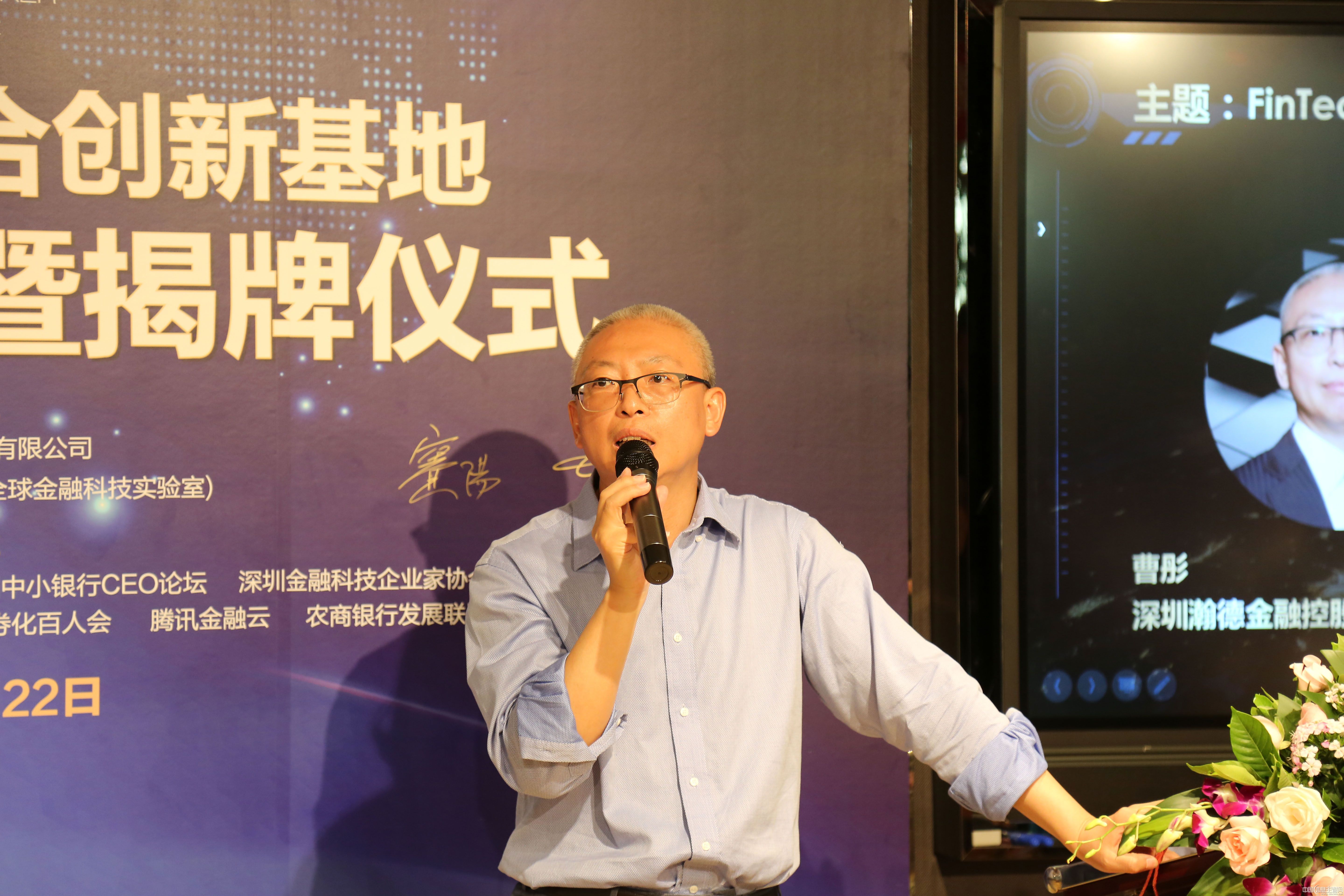 云体系联盟副理事长、深圳瀚德创客金融投资有限公司曹彤董事长在会上围绕联合创新对中小银行发展的重要意义做了深入浅出地发言。他指出:随着互联网金融相关监管细则的落地,2017年互联网金融行业的发展已经走向一个大洗牌的阶段。在此大背景下成立的深圳瀚德创客金融投资有限公司,是国内首家金融创客平台,聚集了国际一流的金融、信息技术、咨询等相关领域的专家及研发人员,专注于前沿金融科技的应用研发,并为国内外相关机构和个人提供一揽子金融创新、创业咨询及配套服务。公司成立以来积极推动金融行业创新,加盟中国云体系产业创新战略联盟,共同发起成立中国区块链研究专委会、China Ledger等区块链组织,推出国内首个基于区块链技术的金融行业应用成果,已经成为国内金融科技创新研发的领先机构之一。此次中小银行联合创新基地的成立,对创新发展、加速创新、提升品牌等具有重要的价值和意义,其重点研究包括区块链、大数据、VR/AR及人工智能等领域的金融创新应用。