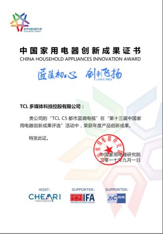 TCL作为中国彩电品牌的代表之一,凭借着X/C/P三大系列电视新品在产品技术领域的领先优势,在展会上广受好评。其中,X6 XESS私人影院凭借量子点显示技术的领先优势,在激烈的竞争中脱颖而出,斩获由德国工商会(DIHK)和美国国际数据集团(IDG)共同颁发的“IFA产品技术创新大奖”中的“量子点技术金奖”,这是IFA最具含金量的大奖之一。同时,IFA展上,C5都市蓝调电视还在中国家用电器研究院举办的“第十三届中国家用电器创新成果评选”活动中斩获了“年度产品创新奖”殊荣。