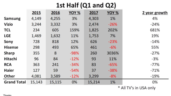 正如TCL集团董事长、CEO李东生曾言,“未来企业需要通过创新驱动,构建新的核心能力。只有不断创新才能适应当今经济全球化的大趋势,以及未来产业竞争加剧的趋势。中国制造只有靠创新驱动,向中国创造过渡,才能实现产业的全面升级。” 据市调机构IHS数据显示,2017年上半年,TCL在美国市场同比增长202%,并超越LG成为美国地区第三大电视品牌。从目前来看,TCL以产品为王、体验为本的战略成效斐然。