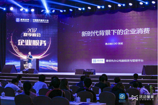 近日,“商务世界·中国商务服务大会”——2017夏季峰会在北京国际会议中心开幕。大会以“链接生态·共享未来”为主题,致力于打造创新、协调、绿色、开放、共享的商务服务全生态产业链。大会期冀以会展平台聚合企业需求,实现服务资源的对接融合,助力企业发展,降低发展成本。易点租COO张斌在大会发言中,从服务化租赁推动企业消费升级的角度阐述了自己的观点。