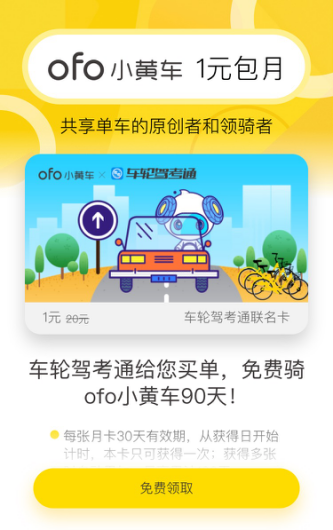 车轮驾考通跨界再出奇招 携手ofo小黄车共推免费骑行月卡