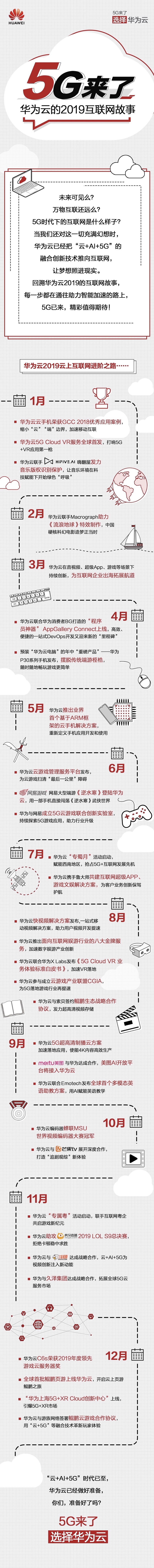 近日,华为云官微发布一张长图,回顾了华为云的2019年互联网故事。在这张长图中,我们可以发现,华为云如何用“云+AI+5G”让梦想照进现实,为互联网行业带来无限可能。