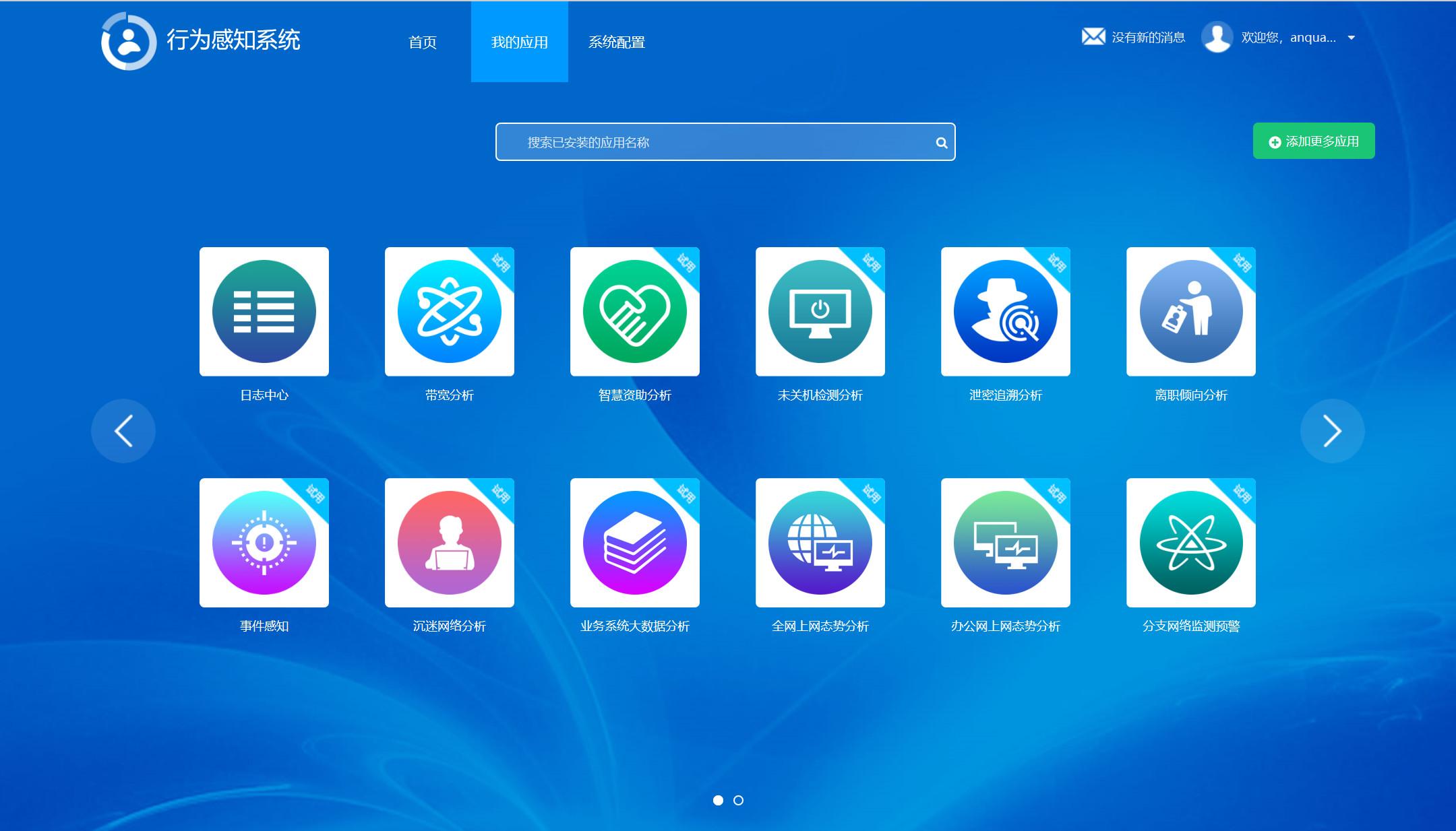 深信服行为感知系统基于海量上网日志,对用户行为特征进行深度建模分析,如员工离职倾向、工作效率分析、学生网贷行为、电子图书馆资源分析等,目前已有超过13个场景的分析应用,服务于国家科技部、南开大学、万科集团等众多用户。