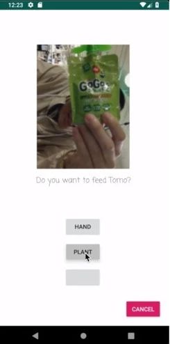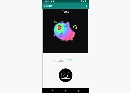 然后它会计算出这食物的热量以及健康程度。而计算的结果会直接的反应到这个萌萌哒的宠物的外观上:如果你吃的很健康,它就会发光!