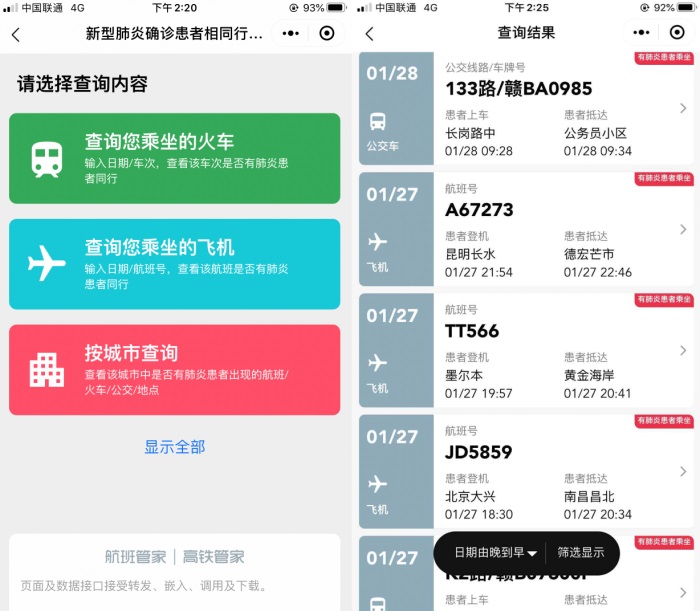 航班管家携手微信,共推“新型肺炎确诊患者相同行程查询工具”