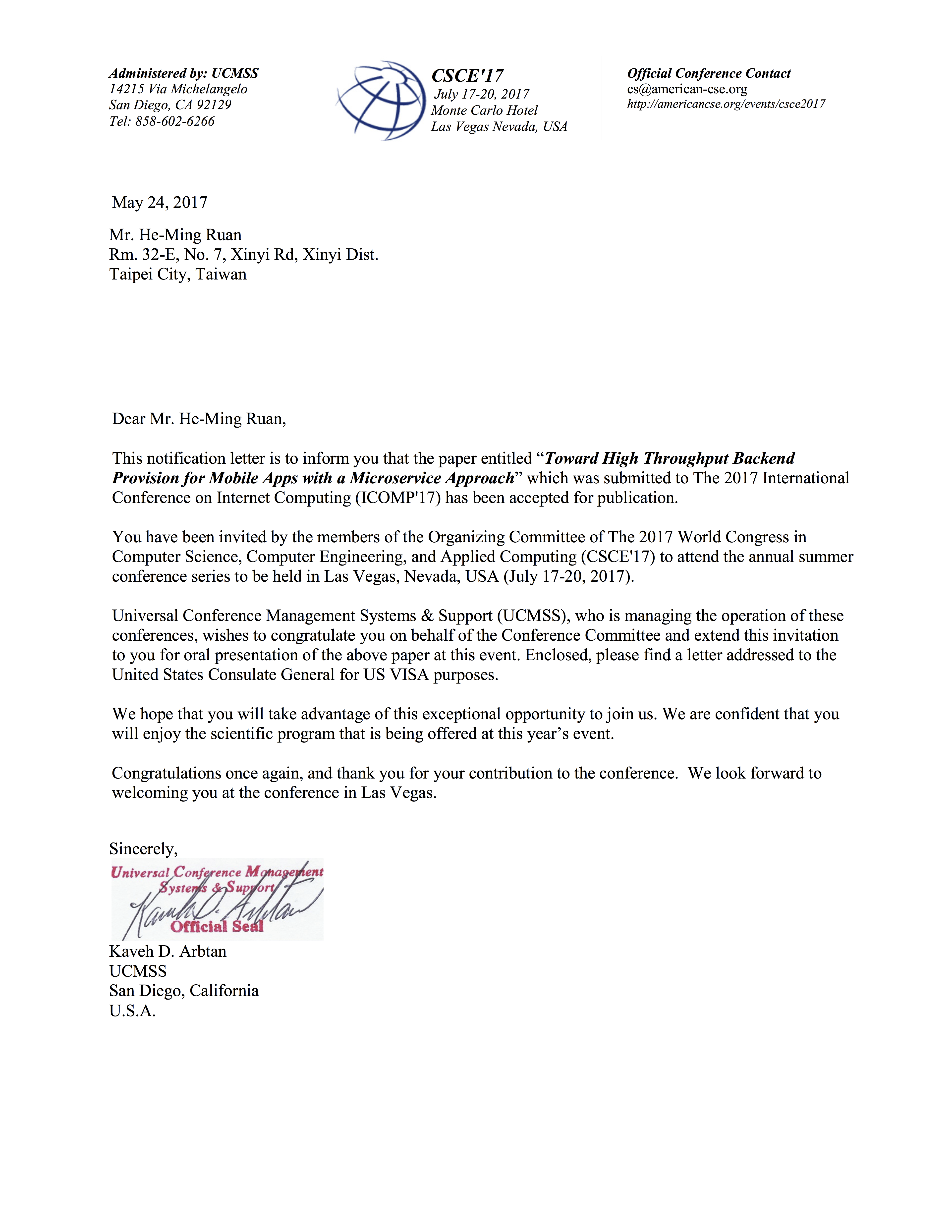 以下是DroiBaaS技术团队获邀至美国拉斯维加斯进行学术分享与交流的邀请函: