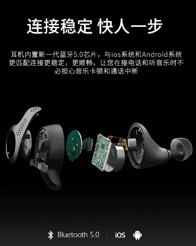 当然,Elite 65t不是一个纯粹的外观党,作为一款定位较为高端的蓝牙耳机,其过人之处更多体现在其功能上,内置新一代 5.0蓝牙技术 ,与手机相连后更稳定、更顺畅,使您的音乐和通话将更加稳定,没有卡顿和中断的烦恼发生。同时,也让连接手机更简单快速,只需拿出耳机戴在耳朵上,就能实现快速配对,非常省事,节省很多不必要时间。