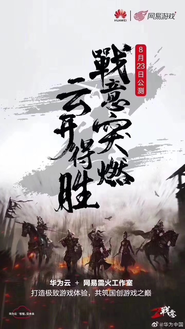 双方除了在云游戏方面的深入合作,网易的一款古代多文明的战争游戏“战意”部署在华为云上,