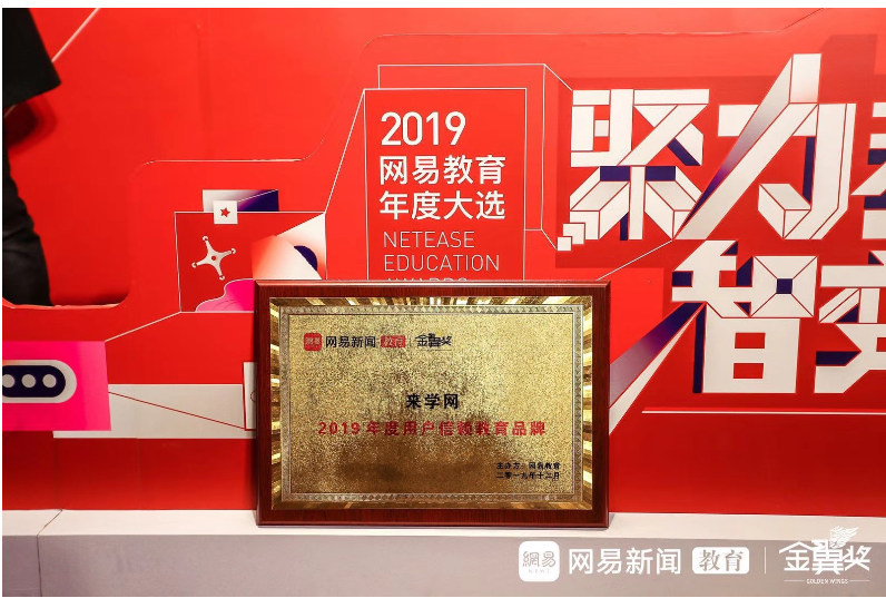 金翼奖活动由网易创立,旨在表彰为中国教育事业做出卓越贡献的个人和机构而设立的年度奖项活动,至今已经成为中国教育界最具影响力的年度盛典之一。本届金翼奖以“聚力教育·智变未来”为主题,通过网络票选和专家评比相结合的形式,产生最终奖项。来学网最终获得了网友和专家的一致认可,斩获殊荣“2019年度用户信赖教育品牌”。