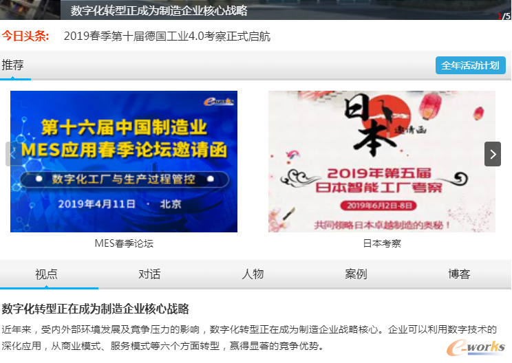 在全新改版页面中,将会首推记者、编辑原创文章、原创报道,以及业界专家原创投稿等,在制造业发展及重大事件中,及时传递e-works声音。