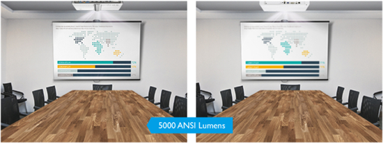 在大型会议中,除了灯光影响投影画面,距离也是较突出的原因。如果机器亮度不够,远距离观看容易模糊不清。所以更高的亮度,不仅能抗衡灯光,也能让坐得远的观众看得清楚分明。