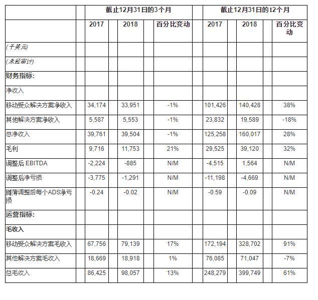 2018年四季度及全年财务和运营亮点:
