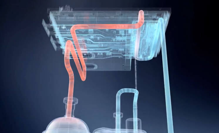 说到“冷媒环”技术,小编这里和大家介绍一下?先举个简单例子吧!相信不少喜欢极限性能的电脑玩家都有过这样的感受,为电脑加装怪兽级硬件的同时,主机温度也是水涨船高似的提升,因此更需要优秀的散热系统,以驯服整机的高温,保证电脑可以安全稳定的运行。而水冷式散热技术凭借水的比热容大,流动快的特点,可以在一个相对密闭的环境里更高效的使用液体在泵的带动下强制循环带走散热器的热量,从而达成更好的散热效果,成为了不少超频发烧友的首选。