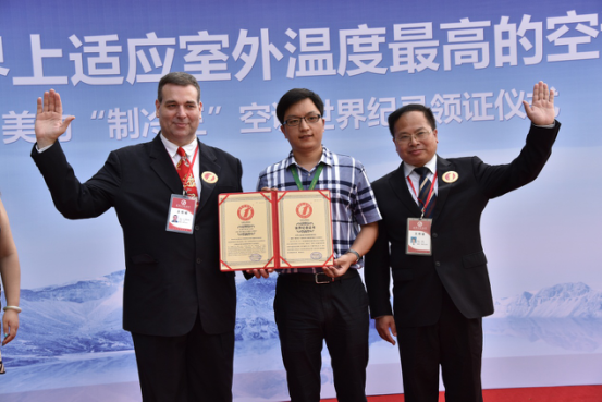 美的制冷王空调“冷媒环”技术,与电脑水冷式散热技术如出一辙。它将电控板传统的自然降温升级为冷媒降温,并使用制冷液体散热,散热效率提高数倍,极大地改善了空调“大脑”的工作环境,用户可以尽情享受“制冷王”带来的清凉。不仅如此,2015年8 月,美的“制冷王”还一举创下了“世界上适应室外温度最高的空调”世界记录,并获得世界纪录协会的权威认证并颁发认证书。