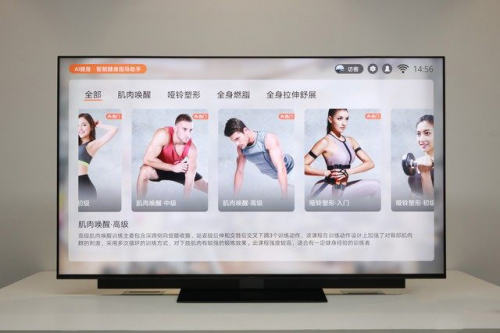 发布会上还重点强调了”AI健身“,智慧屏更够通过摄像头感知画面前用户的各种动作,并和系统内的”标准动作“对比,指导用户健身,承担”私教“的功能。