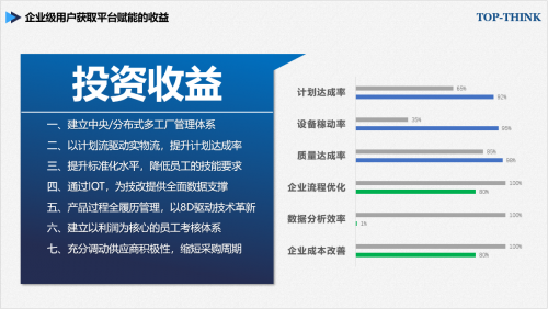TOP-THINK拥有多年面向众多龙头企业提供管理重量化上云服务,在此基础上,复制龙头企业先进经验,减少中小企业管理试错成本。