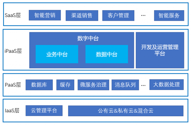 在以消费者为中心的时代,企业的数字化应用发生深刻变革。传统“烟囱式”的体系架构已经难以应付海量数据的并发,更难以支撑业务变化与创新,因此向分布式、平台化转变成为变革的方向。以阿里、腾讯为代表的互联网巨头开始实施“中台”战略,通过中台将共性需求抽象化并进一步解耦和组件化,保证整个系统的分布式,保障业务随着场景发展而迭代。