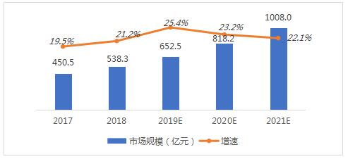 赛迪顾问认为,2018年中国数字营销解决方案市场规模保持稳定增长,增速21.2%,规模达到538.3亿元。基于对整体市场、技术成熟及应用程度、企业竞争等指标的研判,赛迪顾问认为中国数字营销解决方案市场将在2019年迎来一轮爆发,预测2019年市场规模将达到652.5亿元,增长率达25.4%,2021年中国数字营销解决方案市场规模将晋升“千亿市场”,整体市场规模达到1008亿。