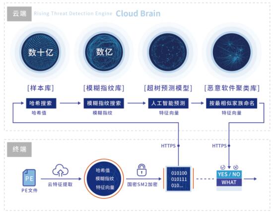 瑞星经过多年的探索,结合海量的样本数据、多种智能算法,建立了一套从后端的恶意软件采集、分析、处理,到客户侧的恶意软件识别能力转化的全自动化运营过程,实现了7*24小时不间断运营。另外,人工智能技术在恶意软件识别领域的不断调教和应用,给瑞星带来了良好的未知恶意软件预判性和误报可控性。