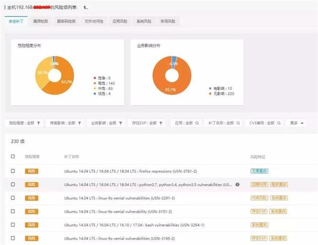 研究表明,黑客入侵风险在一周内达到中等水平,而当一个关键系统的漏洞持续存在一个月或更长时间时,这种风险就会变得很高。据SANS研究所,在最近一项关于持续监控实践的研究中指出,关键的漏洞最好在一天或更短的时间内得到补救。青藤的产品以资产清点作为数据支撑平台,为每项资产提供完整视图,与青藤自适应平台中的风险发现和入侵检测系统全面关联,实现一键查看,帮助机构组织快速查询,并在几秒钟内获得关于其安全性和合规性整体情况。