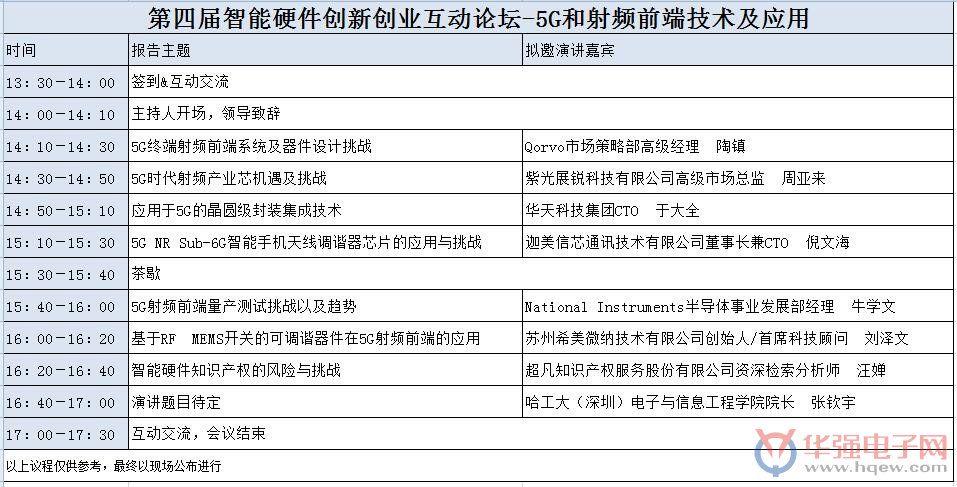 对此,华强电子网、麦姆斯咨询、华强智造联合举办“第四届智能硬件创新创业互动论坛-5G 和射频前端技术及应用”。通过对 5G 技术标准化和应用场景,智能手机在 5G 时代对射频前端模组的要求,以及射频前端模组及核心元器件的技术和应用等方面深入分析,带您领略 5G 时代射频前端产业“航程”的美好前景!