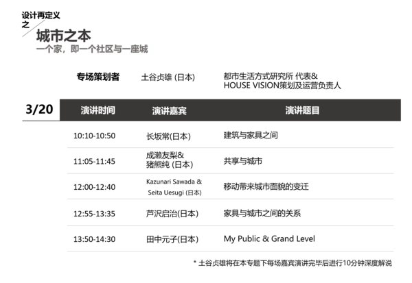 本期话题下,通过日本城市与社区可持续发展的理念,邀请来自日本的空间设计师、共享空间建筑师、城市空间研究者、家具设计师,在“HOUSE VISION探索家”总策划人土谷贞雄的召集下,探索“城市”、“空间”与“人”三者的关系与实践模式。