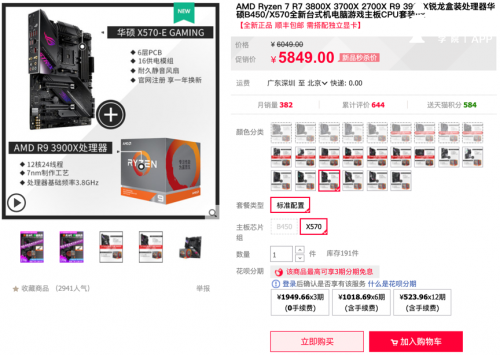 华硕ROG STRIX X570-E GAMING主板供电强劲、散热优异,凭借卓越的设计和时尚的外观赢得了众多A饭们一致好评。推荐搭配拥有强劲游戏性能的3900X,即刻开启超凡游戏体验!且现在购买板U套装仅需5849元,近期有装机需求的玩家绝不容错过!购买链接:https://detail.tmall.com/item.htm?id=604972104648