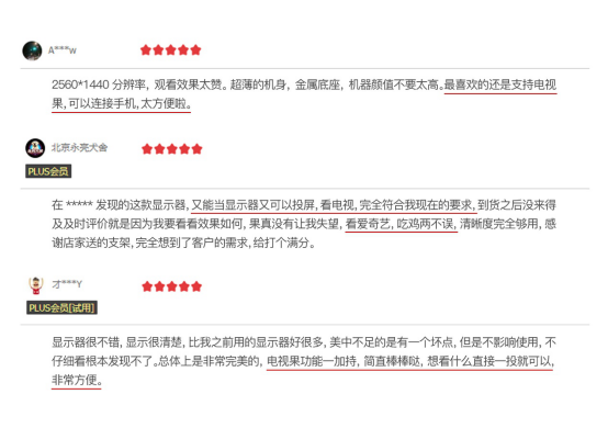 从用户评论不难发现,“电视果投屏”、“连接手机”、“看电视”等出现频次颇高,与传统显示器评论中常出现“4K”、“曲面”、“144Hz”等迥然不同。事实上,用户对产品的需求,已经从一味对参数的苛求,转变为对更好体验的追求。除了更高的分辨率,更超薄的机身和爆表的颜值,显示器还能如何取得突破?这款投屏黑科技显示器给出了答案。