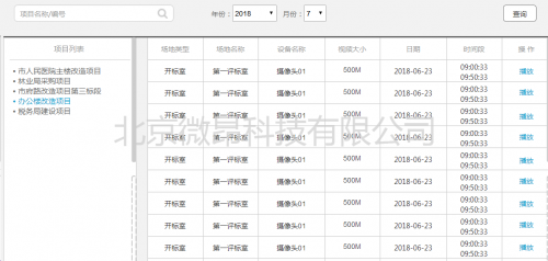视频存储管理:实现按项目时间和项目编号自动创建存档目录,形成直观的存档目录表,系统支持按照项目名称、项目编号、日期、标室等不同维度查询。