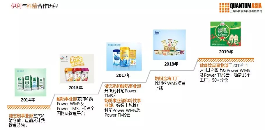 伊利酸奶事业部也与科箭签约,实施Power WMS仓储管理系统及Power TMS运输管理系统,搭建全国物流管理平台,整合酸奶事业部工厂及直营仓所有物流业务,并与已实施的液态奶事业部的Power物流系统进行整合,最终实现伊利股份全集团的物流供应链一体化管理。目前,已经上线工厂10个,直营仓10个,分仓15个。