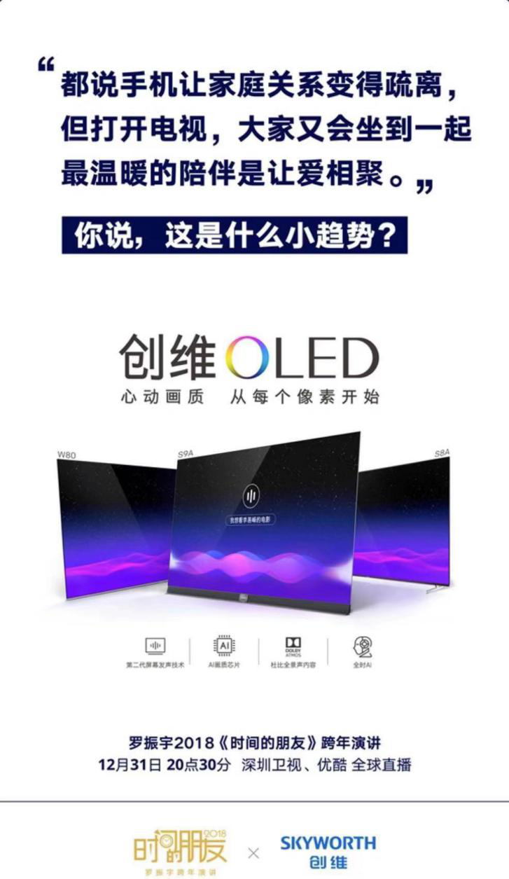 在演讲中,罗振宇着重强调了创维。在他看来,有着三十年历史的创维,见证了中国老百姓生活质量不断改善、中国电子产业创新的辉煌历史,“上世纪八九十年代,那个时候一家人要买了一台创维电视,附近好几个村的老百姓都得赶来看。从八十年代开始就从事一项事业,一直到今天都能保持创新和领先,你数数看,在中国能有几家?创维是一家有传统的企业,这样的企业当然就值得信赖。”