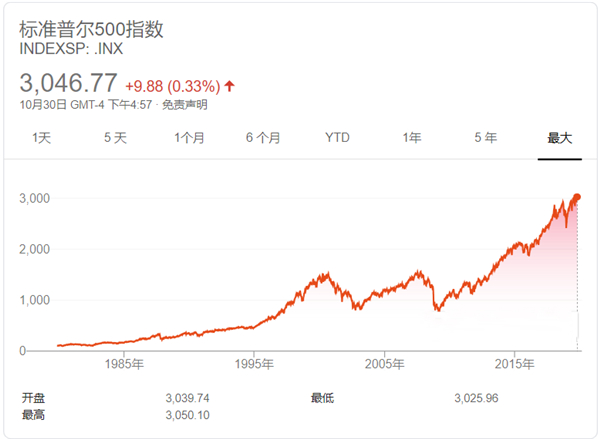 降息消息公布后,投资者收到鼓舞,美股大盘随即拉升至收盘,三大股指全线收涨,标普500再度创出历史新高,上涨0.3%至3046.77点。