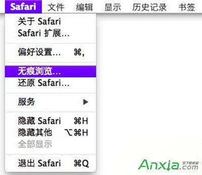 温馨提示:苹果Mac OS较低版本,可以点击左上角“Safari”,菜单中选择“无痕浏览”