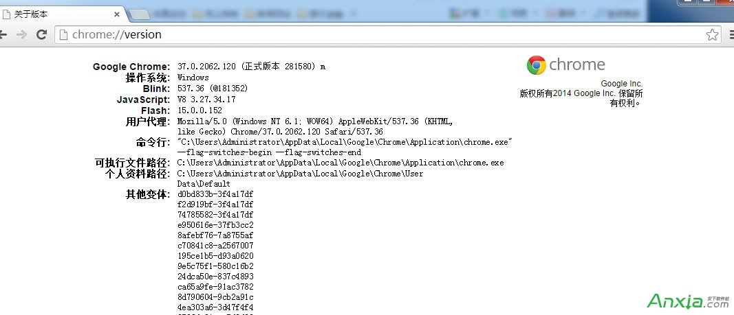 修改chrome字体为默认雅黑:1:打开chrome浏览器,地址栏输入chrome://version/,查看chrome版本