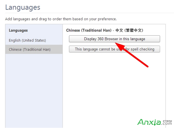 3.在中文(繁体中文)语言下,点击【Display 360 Browser in this language】按钮。