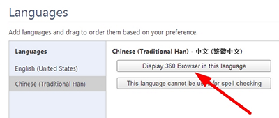 3.在中文(繁体中文)语言下,点击【Display 360 Browser in this language】按钮。