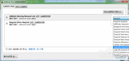 遇到过滤效果不是很好怎么办?可以点击【打开过滤选项】,点击添加订阅新的规则。(后面是各种国家的常见插件语言,咗嚛表示翻译不过来哈)