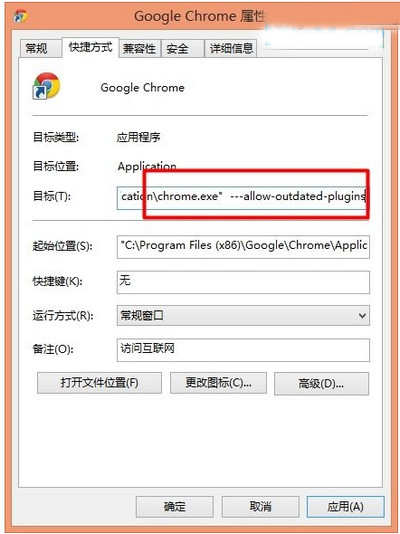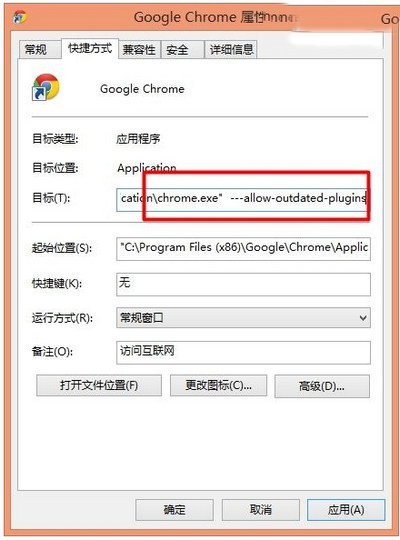 方法就是在Chrome浏览器的快捷方式的exe文件之后加一个启动参数,注意“--”前面有空格。