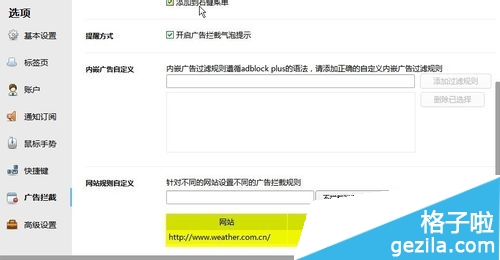 【网站规则自定义】设置:某些场合的弹窗或内嵌广告是不能拦截的,例如OA或网银什么的,这时可以将不能拦截网站或页面的网址添加进“免拦截”~