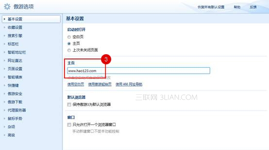 2、基本设置里在主页下面输入 http://www.hao123.com/ 后,关闭重新打开即可 ,如下图: