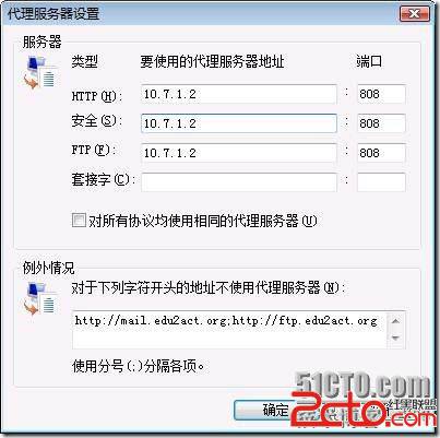 5. 访问企业内部网站不需要使用代理,在“例外情况”中,输入那些直接访问的网址。