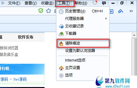 点击右上方的“工具”菜单,在弹出的菜单栏中找到“清除痕迹”