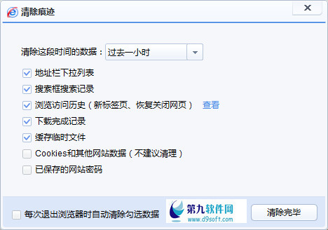 在弹出的对话框中找到“缓存临时文件”,在前面方框内打上勾,之后点击清除痕迹。