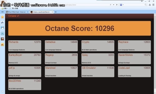 Google V8 Benchmark测试是Google放出的Javascript测试集。V8 Benchmark Suite会载入Javascript代码,对系统的内核、加密、解密、渲染等进行速度测试。在浏览器测试结果中,数据值越大说明该浏览器对Javascript代码的“理解”越好,浏览器的运行速度就会越快。