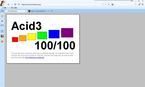 Acid3主要测试浏览器的DOM script 能力、CSS 渲染、SVG、WEB 2.0规范等方面。除要求得分越高越好外,还必须动画渲染整齐,每个像素都应与官方参考结果完全一致。满分为100分。