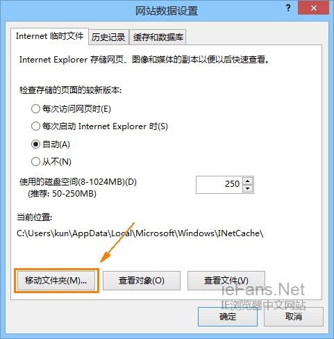 我们只要将IE临时文件夹移动到一个存在文件夹,或者根据当前指定的路径建立一个文件夹。