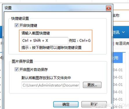 打开“设置”界面之后,我们能看到一个快捷键的设置,用户可以自行修改截图的快捷键了。
