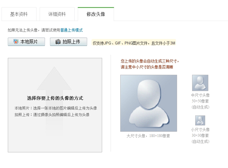3.上传头像,自定义设置即可,和qq头像设置差不多